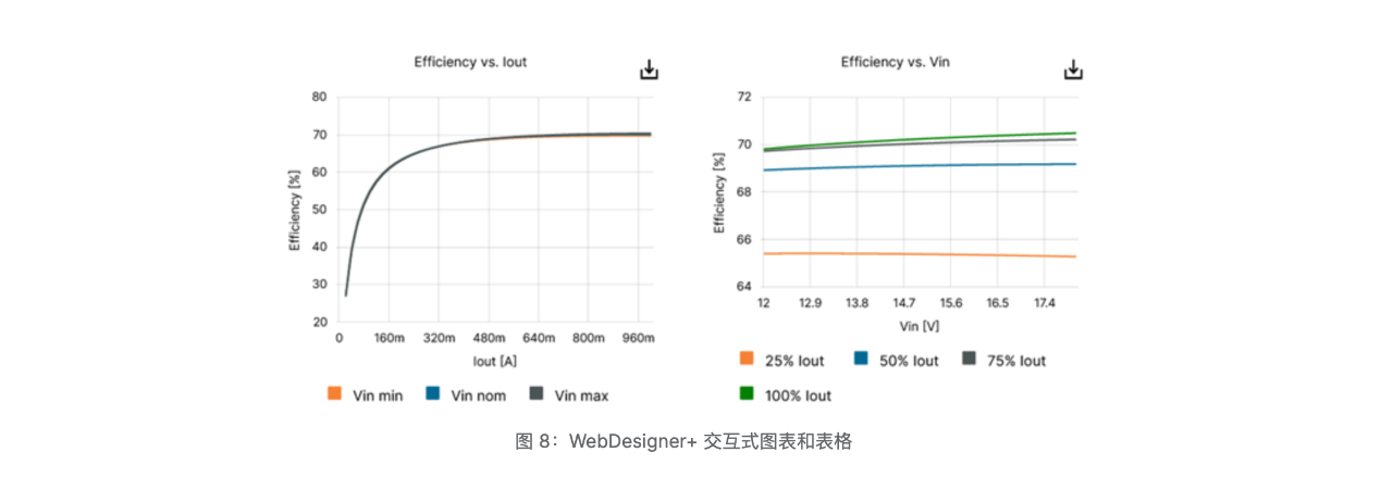 WebDesigner+ 使用先進的數學模型來計算工作狀態下的器件參數,如能效、損耗、元件溫度等,並且能夠以交互式圖表和表格的形式呈現這些參數,從而幫助用戶快速評估設計的適用性。