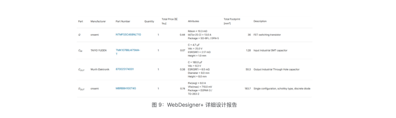 該工具還能夠整合推薦的物料單 (BOM)、原理圖、設計工作參數和圖表等信息,創建一份詳細的設計報告,並且您可以與同事分享這些信息。