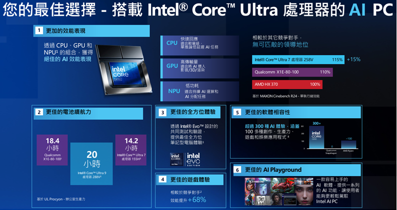 總結來說,使用 Intel Arrow Lake 平台的新一代 AI PC 能夠提供: