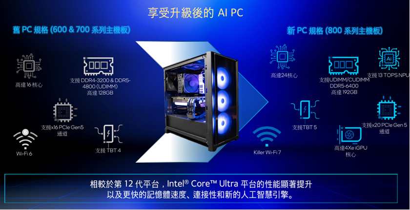 因此,Intel Arrow Lake 平台是推動「新一代 AI PC」發展的關鍵要素之一,它將使 AI 功能更加普及,並為使用者帶來更智慧、更高效的個人電腦體驗。