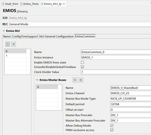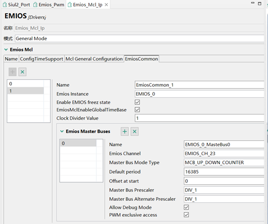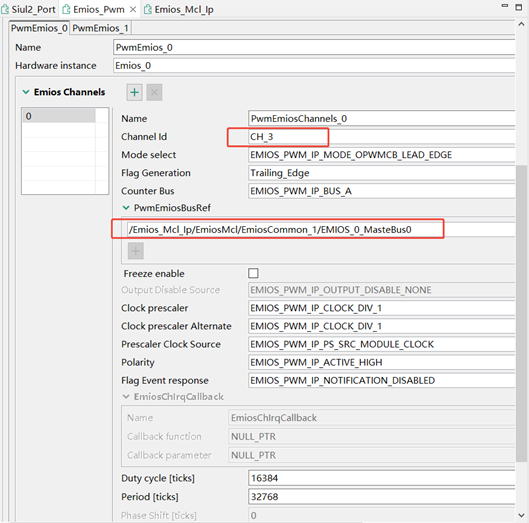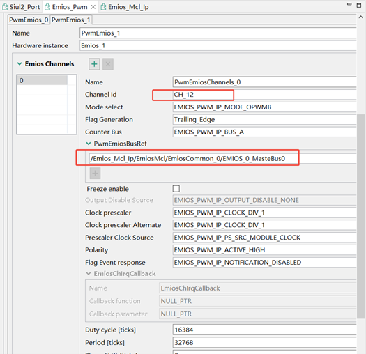 進一步添加組件Emios_Pwm及Emios_Mcl_Ip