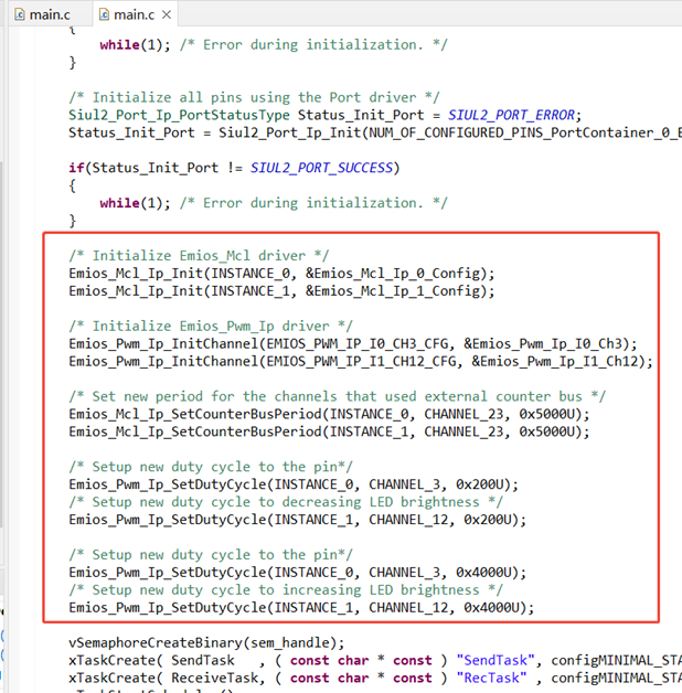 參考例程Emios_Pwm_Ip_Example_S32K344代碼,對S32K312的PWM外設進行配置