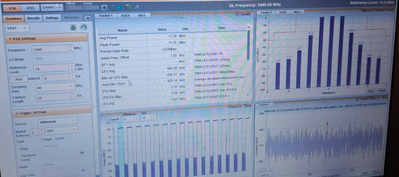 - 測試裝置是否能穩定鎖定在正確的頻率上,且在封包期間不會偏移過多。