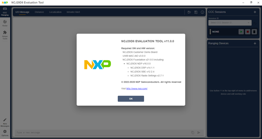 進入GUI畫面後即會出現此版NCJ29D6 Evaluation Tool 11.0.0所能支援的軟體跟硬體版本。