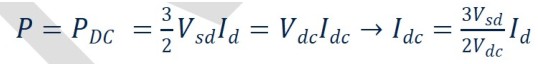 參考三相整流器的電源拓撲進行數學建模, 可推導出逆變器的有效功率為: