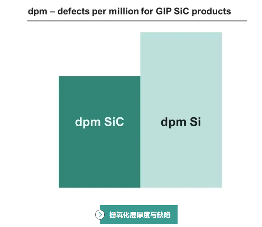 為何我們特別關注柵氧化層厚度?在SiC材料上形成的二氧化矽層相比於矽材料上的二氧化矽,存在更多的缺陷。直觀來看,這些缺陷的影響方式是使柵氧化層局部變薄,失效風險更高。為了消除存在此類缺陷的元件,最大程度降低柵氧化層缺陷對元件性能的影響,並確保元件的長期可靠性,英飛凌對柵氧化層進行篩選,即在生產後對元件施加較高的柵極電壓。如果柵極氧化層中含有缺陷,那麼該點的電場將高於二氧化矽所能承受的臨界電場,導致有缺陷的晶片損壞或性能下降,而無缺陷的元件則不會受到影響。