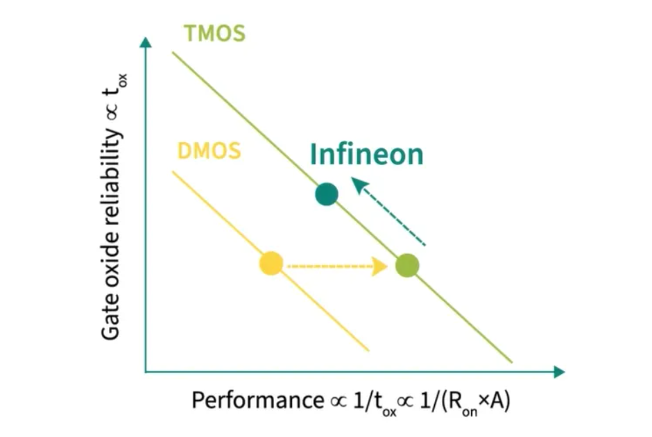 英飛凌著手開發碳化矽功率元件已有30年的歷程。英飛凌在設計之初就決定開發溝槽閘結構,而非更容易實現的平面閘設計,儘管開發溝槽閘需要更高深的工藝知識。英飛凌透過選擇具有較厚閘極氧化層的溝槽閘MOSFET,成功地將其可靠性特性融入元件設計中,從而實現了有效的缺陷篩選,而這一點是採用較薄閘極氧化層的其他元件設計所無法實現的。該決策使英飛凌實現了超越成熟矽技術的高可靠性,同時不會對關鍵性能參數產生負面影響。