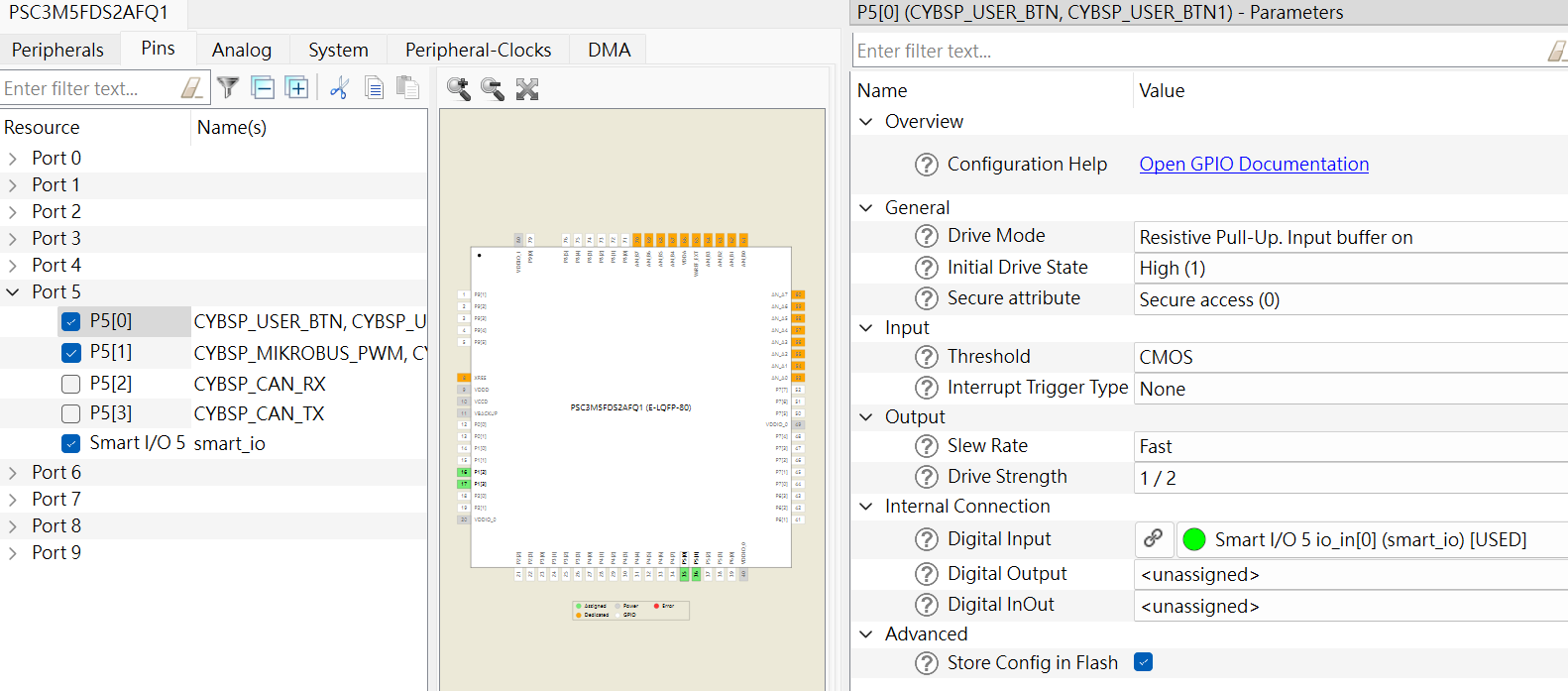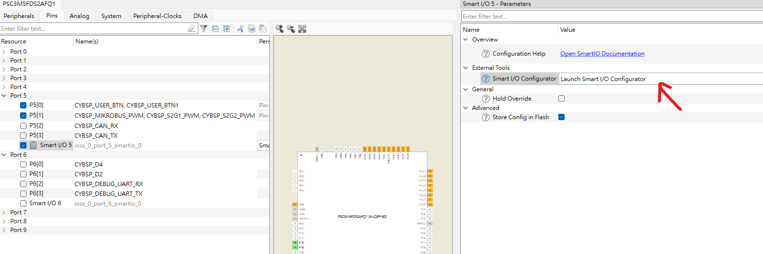 5.1 選擇P5[0]為 Smart I/O 5 input