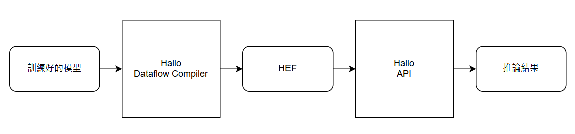 在 Hailo 的 AI 晶片上運行神經網路模型時,不能直接使用原始的模型檔案,需要使用 Hailo Dataflow Compiler 將模型轉換為 Hailo 晶片可執行格式(HEF)。