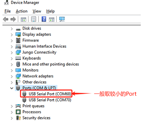 3、EVK 連接 PC 和 MP6200/GSS6700 設備,在 PC 設備管理器中取得 EVK Port(取較小的 Port)