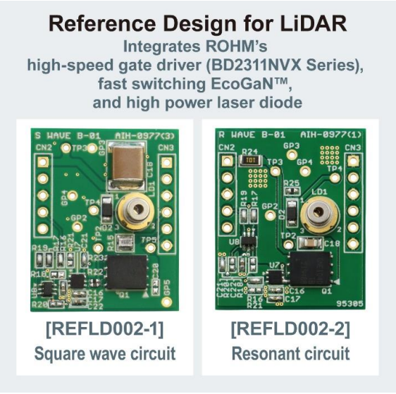 除了量產能夠高速開關的 GaN HEMT,ROHM 還開發了驅動器 IC,以最大化 GaN 裝置的效能。結果是超快速開關,最小閘極輸入脈衝寬度為 1.25ns,有助於實現更小、更節能的應用。此外,ROHM 網站上提供了一個 LiDAR 應用的參考設計,結合了 BD2311NVX-LB 和 GaN HEMT 以及高功率鐳射二極體(圖 4)。
