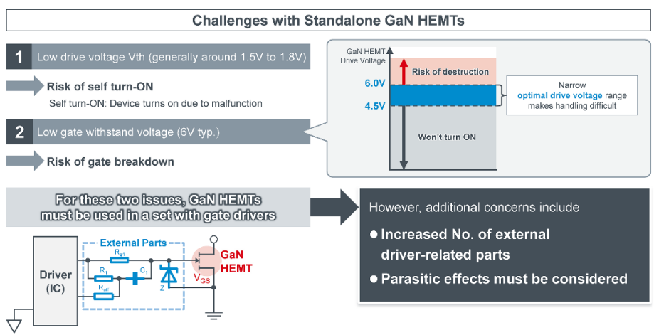 由於GaN HEMT的閘崩潰電壓低於矽MOSFET,因此需要閘驅動器,使其更容易受到閘損壞和自動導通的影響(圖6)。