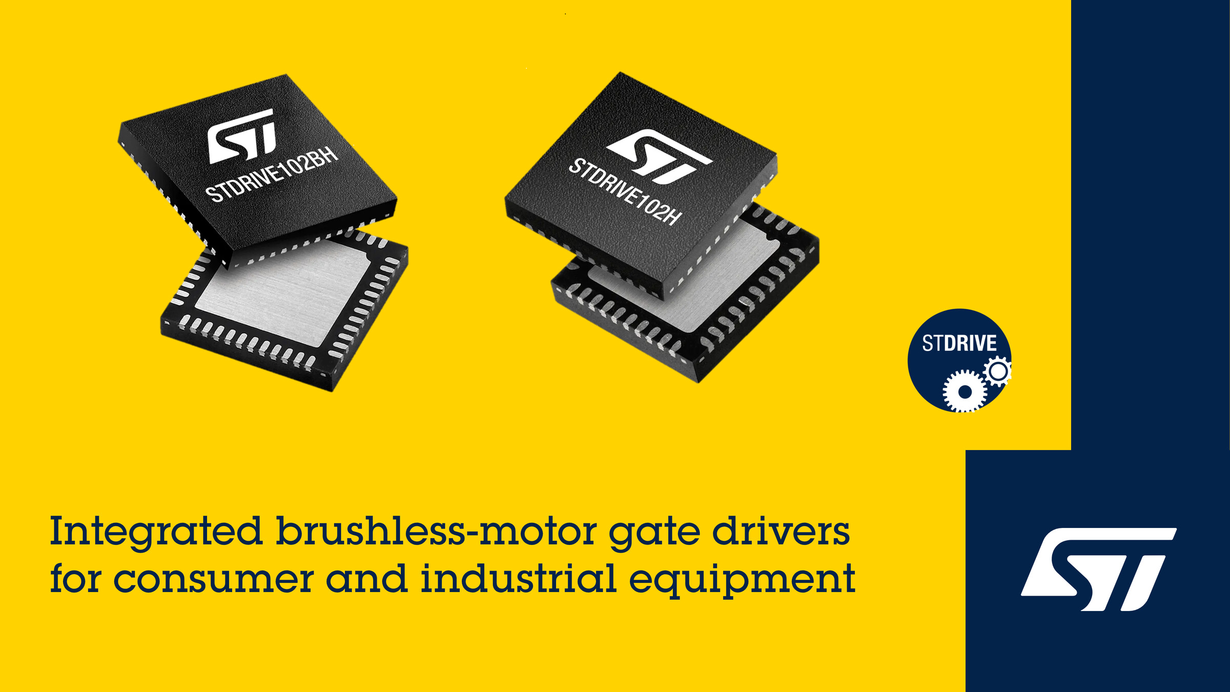 意法半導體推出新一代整合式閘極驅動器STDRIVE102H和STDRIVE102BH用於控制三相無刷電機,提升消費電子和工業設備的性能、能源效率及經濟性。