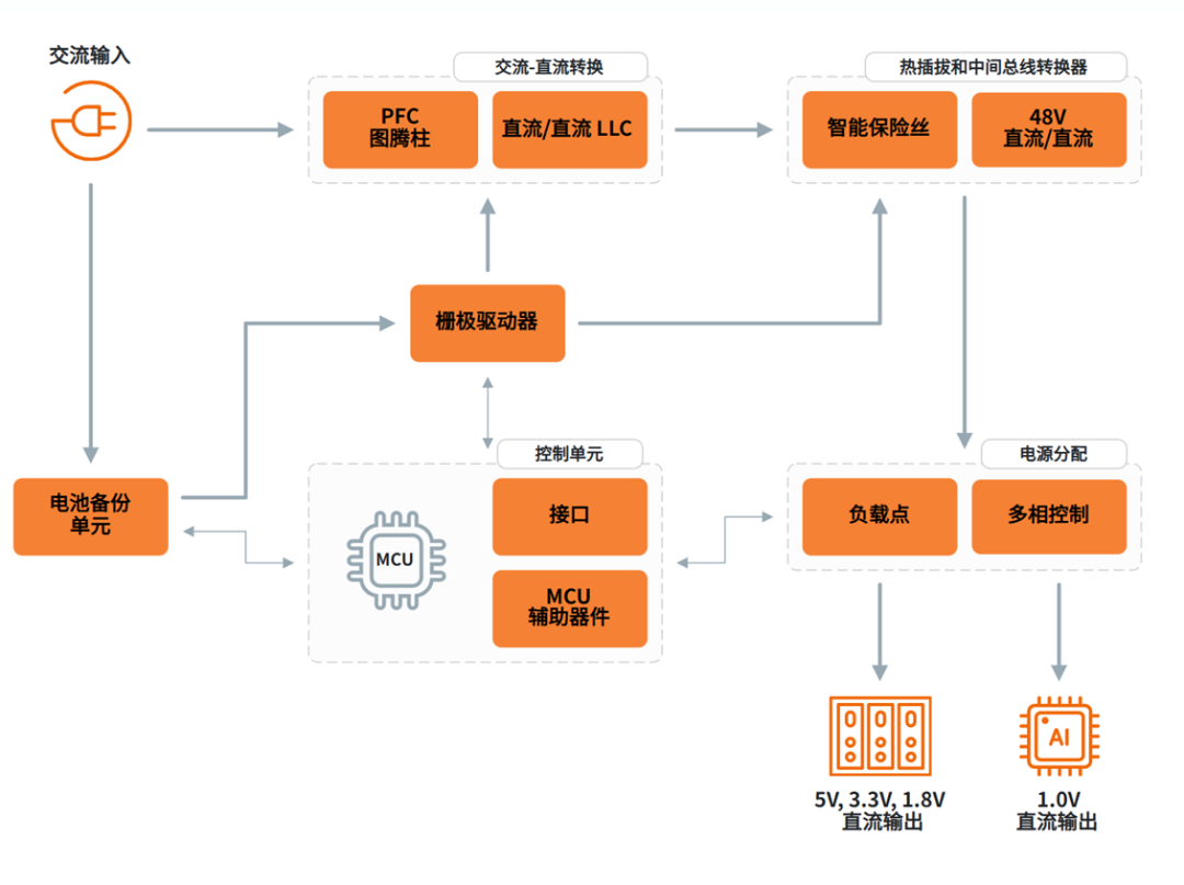 圖 2:12 kW AI 雲端運算電源單元原理圖