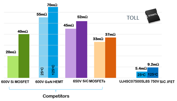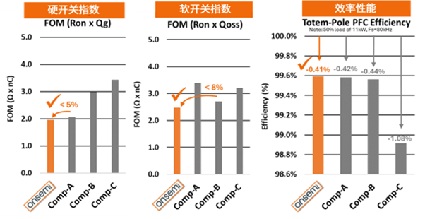 在高速切換頻率的應用中,憑藉業界領先的品質因數(Figure-of-Merit, FoM),在硬切換和軟切換應用中均有出色表現,在 PFC(功率因數校正)級的效率最高可達99.6%。此外,安森美高性能的 SiC 共源共柵(Cascode)JFET 具備高速切換、低導通電阻以及與現有驅動器相容的優勢,成為超大規模數據中心極具吸引力的解決方案,可顯著降低系統成本並提供卓越的能效。