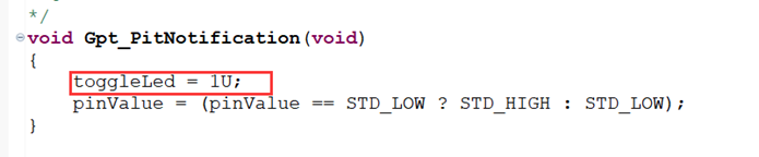 同時我們也可以配置Gpt的計數完成的回呼函數,取個名字為「Gpt_PitNotification」,以便於在回呼函數中實現LED的閃爍。