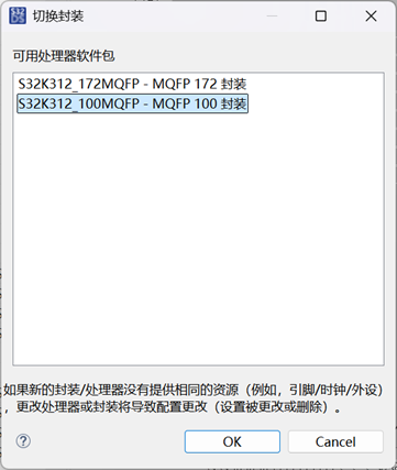 更改晶片封裝為100針。