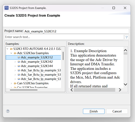 在主頁面點擊「File」->「New」->「S32DS Project from Example」,可以看到如下對話框: