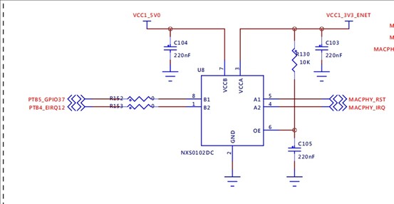 使用了開發板上的PTB5和PTB4,這兩個引腳經過了一個電平轉換晶片,高電平為3.3V。