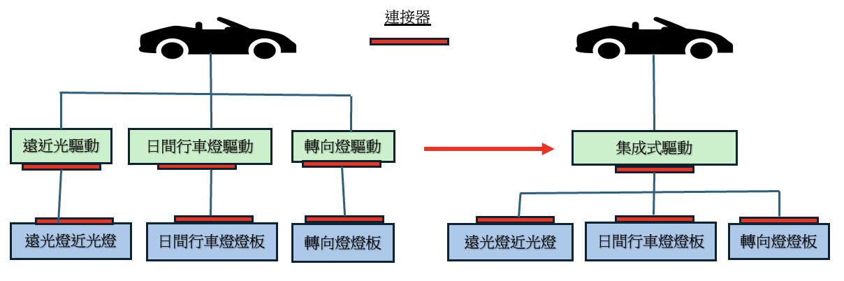 驅動器整合可以節省LED大燈內部空間和元件數量,以降低模組成本和減少故障率,縮短開發週期。