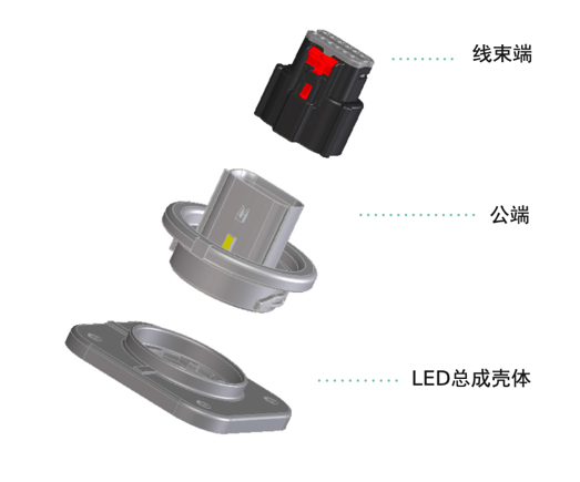對於LED大燈總成來說,除了燈板和控制器上使用的非密封連接 除了器件之外,還需要一個密封連接器作為大燈總成的對外接口,由於 大燈總成安裝在整車的濕區,因此需要達到IPX7甚至IPX9K的密封等級。 等級。