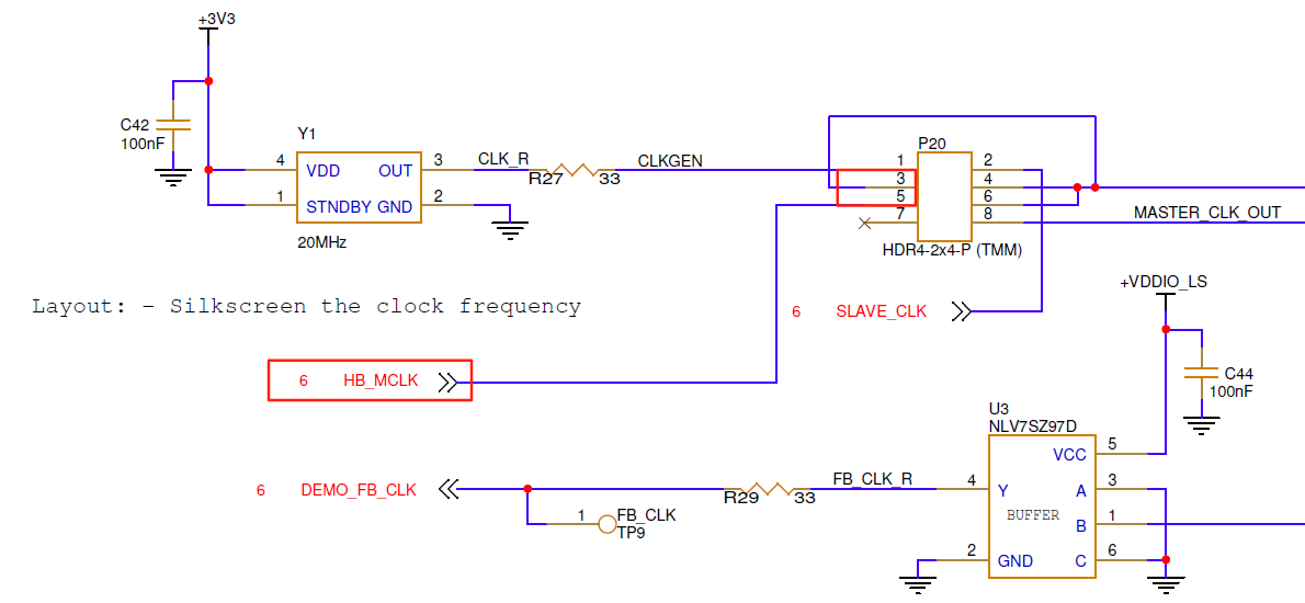 2.需要確保MCLK為Demo Board的輸入,確認P20的3與5已連接。