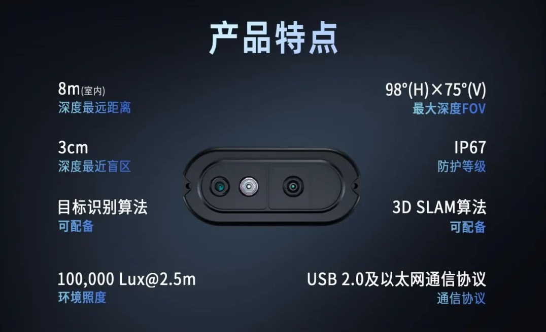結合散斑紅外、LED紅外和深度影像技術,精準識別細線、透明物體(如玻璃門)、黑色高反射表面(如瓷磚地面),即使在10萬Lux強光下的戶外場景(如逆光白板識別),也能穩定識別目標。