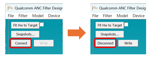當ANC filter designer出現「Disconnect」字樣,代表S7 Gen 1已成功連接,準備進行後續調整。