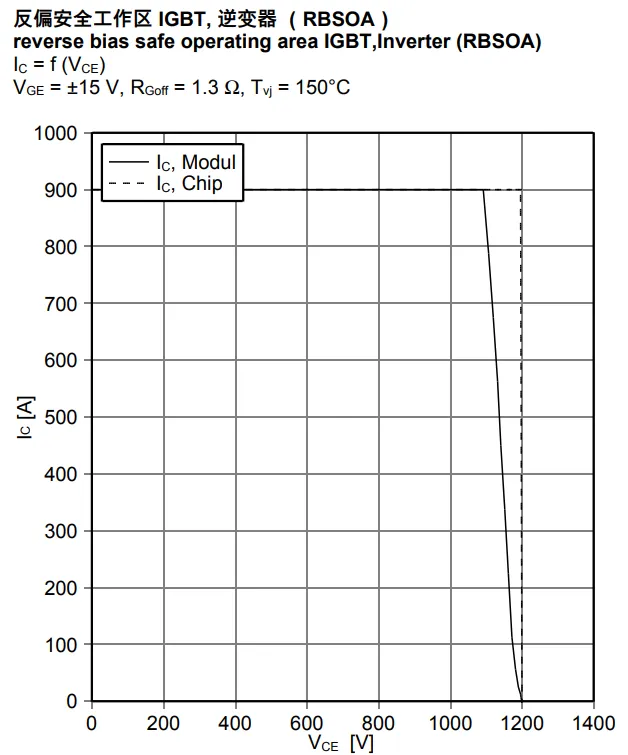 同時在圖表中給出了反偏安全工作區RBSOA,這代表IGBT關斷電流能力,也就是說英飛凌的IGBT模組可以可靠地關斷2倍於自身標稱電流的電流。這一重要參數在出廠檢驗中進行了100%的測試。