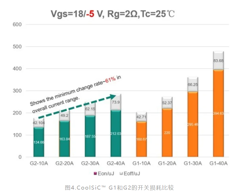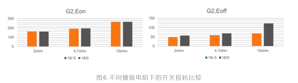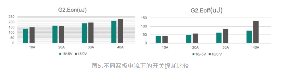 例如,當使用2Ω的閘極電阻時,與0V關斷電壓相比,在漏極電流為40A時,採用-5V關斷電壓時 G2 器件的關斷損耗降低了44%。