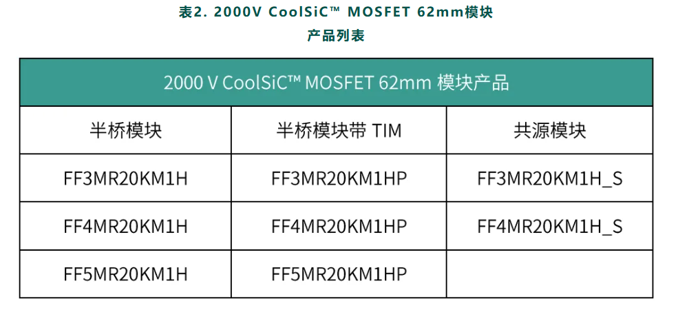 3. 62mm CoolSiC™ MOSFET 2000V半橋模組