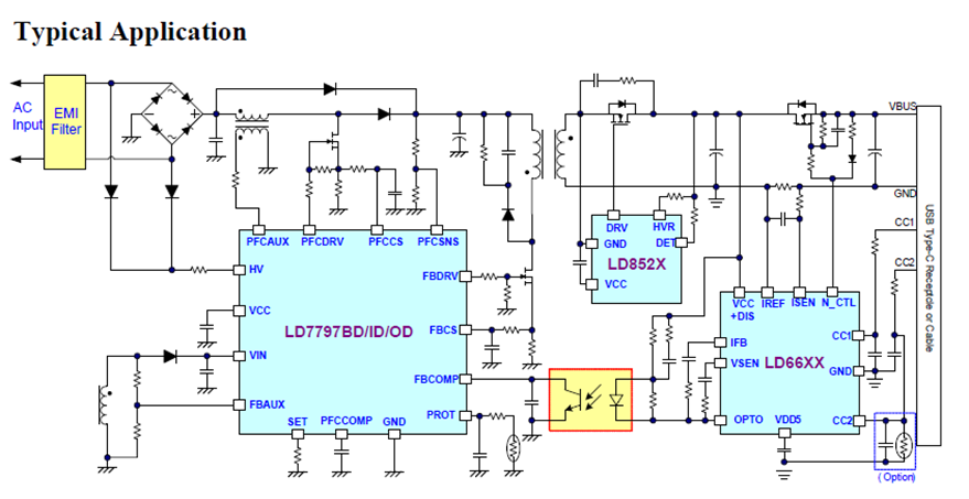應用於切換式AC/DC適配器電源的LD7797是一款高壓多模式PFC+PWM高效能整合(GaN)驅動控制器IC,具有過渡模式功率因數校正 (PFC) 電壓模式控制器和準諧振 (QR) 電流模式控制器,適用於高功率應用。PFC和PWM接腳均採用低電壓驅動機制,適合驅動增強型GaN FET,以獲得更佳性能。