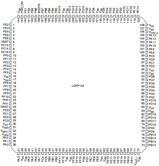採用LQFP144封裝(20×20mm),工作電壓1.8V-3.6V,支援-40°C至+85°C工業級溫度範圍。