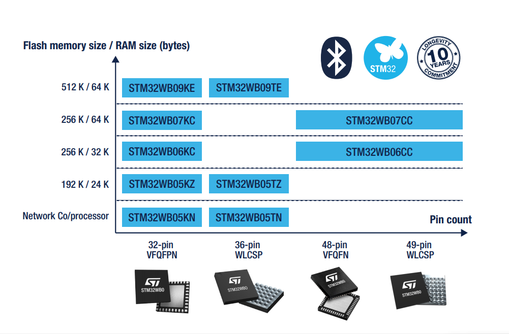 | STM32WB09 | 512 KB Flash 64 KB RAM |