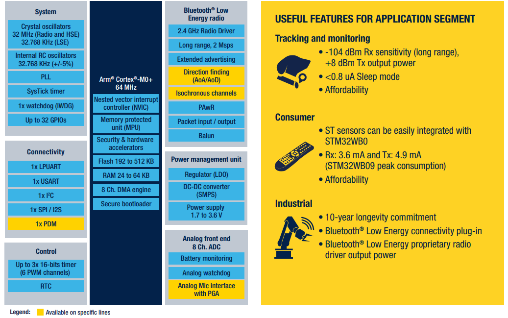 - STM32WB09:512 KB Flash + 64 KB RAM,滿足工業應用複雜需求。