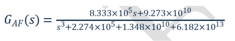 GAF(s)代表硬體濾波器的傳遞函數。GDF(s)可根據BUS電壓採樣的電路參數計算得出,公式如下: