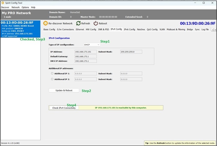 點選至 IPV4 Config 頁簽,修改設定為 DHCP,重置設定與更新狀態