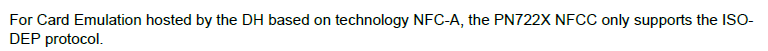 由PN7220文件可知,在card mode的部分只支援ISO-DEP tech A