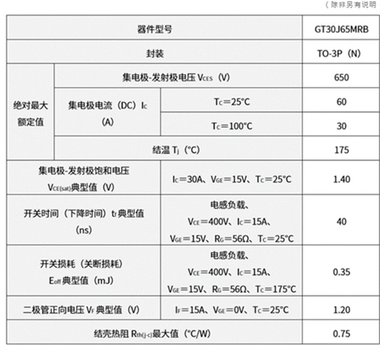 (1)第七代產品,絕對最大額定值:集電極-發射極電壓VCES=650 V;集電極電流IC=60 A