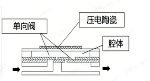 壓電微泵利用了壓電材料的逆壓電效應,即在電場作用下,壓電陶瓷材料會發生拉伸/壓縮形變,帶動陶瓷片下面的金屬片產生如圖4所示的向上凸起或向下凹陷。壓電振子在電場作用下,泵的腔體容積會發生變化,從而對液體產生“吸”或“壓”力,並在單向閥的作用下形成液體的單向流動。而在振子上施加交流電場,流動就變成了連續的吸壓流體,形成連續流。