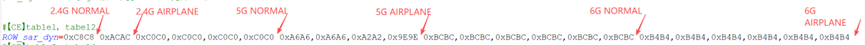 0xB4B4,0xB4B4,0xB4B4,0xB4B4,0xB4B4,0xB4B4表示HEAD_AIRPLANE 6G的6個頻段降低SAR值。