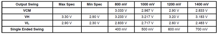 Hi-Z 表示兩個輸出端之間沒有終端電阻,實際系統通常在接收端對 3.3V 有 50Ω 上拉。