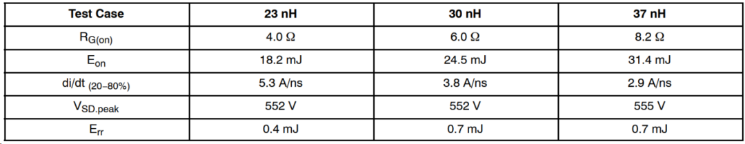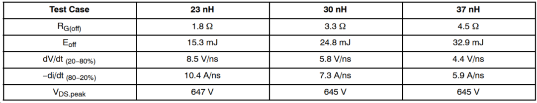 表 7. 總結:SiC MOSFET關斷特性與直流鏈路環路電感