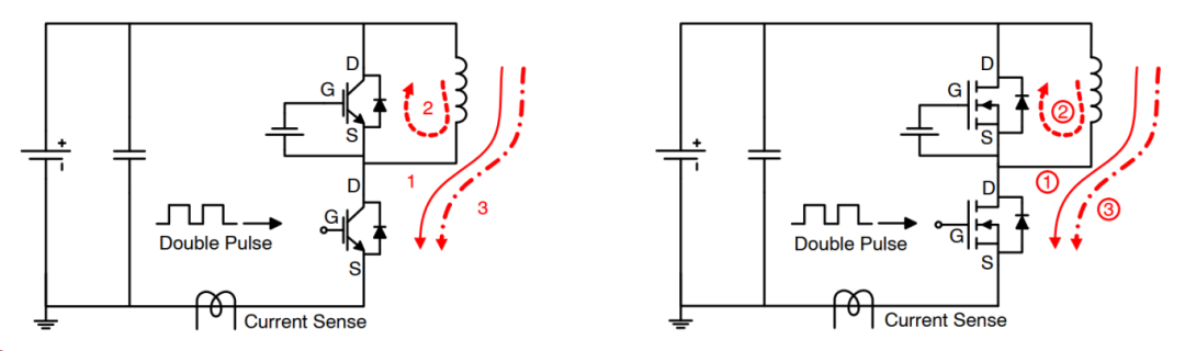 就二極體而言,反向恢復峰值電流之後,較高的迴路電感會影響二極體的峰值電壓。結果顯示,較高的迴路電感配置會影響具有快速恢復特性的二極體,導致更高的反向恢復損耗。由於快速恢復,增加RG(on)可能需要考慮與EMI相容性。此外,在SiC MOSFET的情況下,EMI相容性比IGBT更為關鍵,因為它具有更大的振盪幅度和頻率,能作為噪聲源運作。