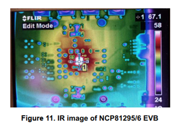 **圖 11. NCP81295/6 EVB 的熱成像圖**