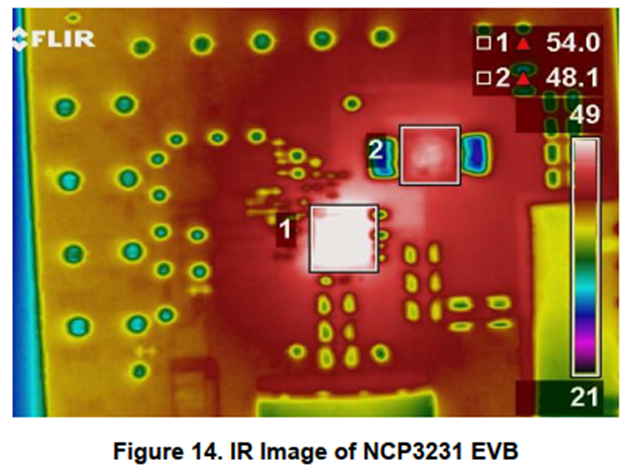 **圖 14. NCP3231 EVB 的熱成像圖**