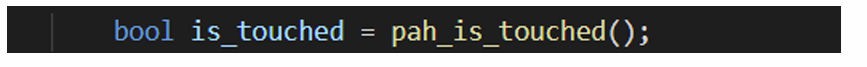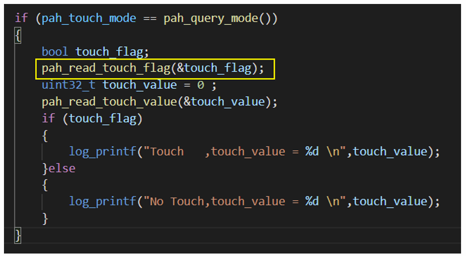 • PAH8112 在正常的 HRD/SpO2 測試過程中,會自動確認 Touch 狀態,所以在 HRD/SpO2 測試過程中可以直接使用如下截圖流程內的 is_touched 變數值。直接通過此值,就可以判斷設備是否有「佩戴」。
