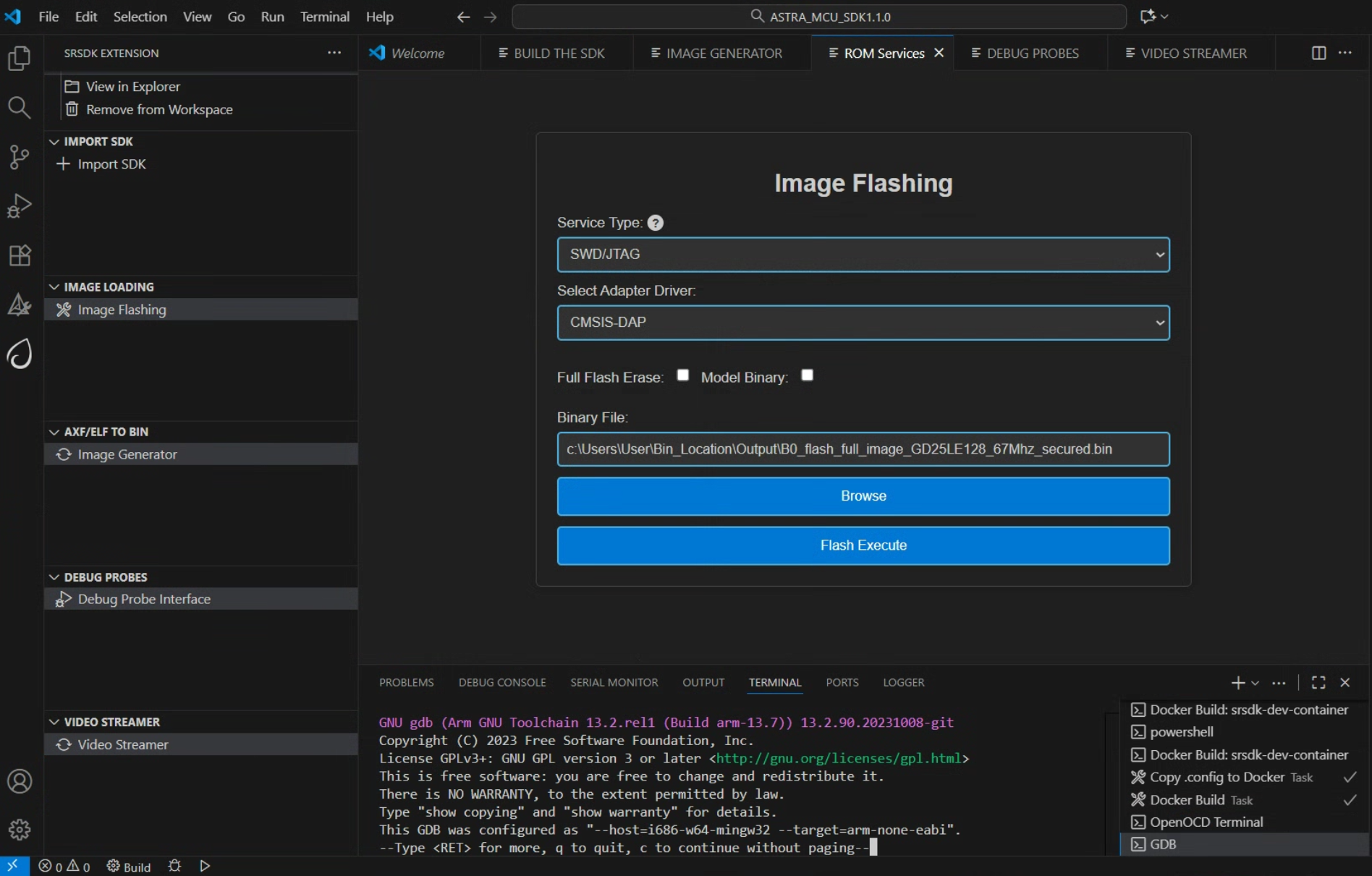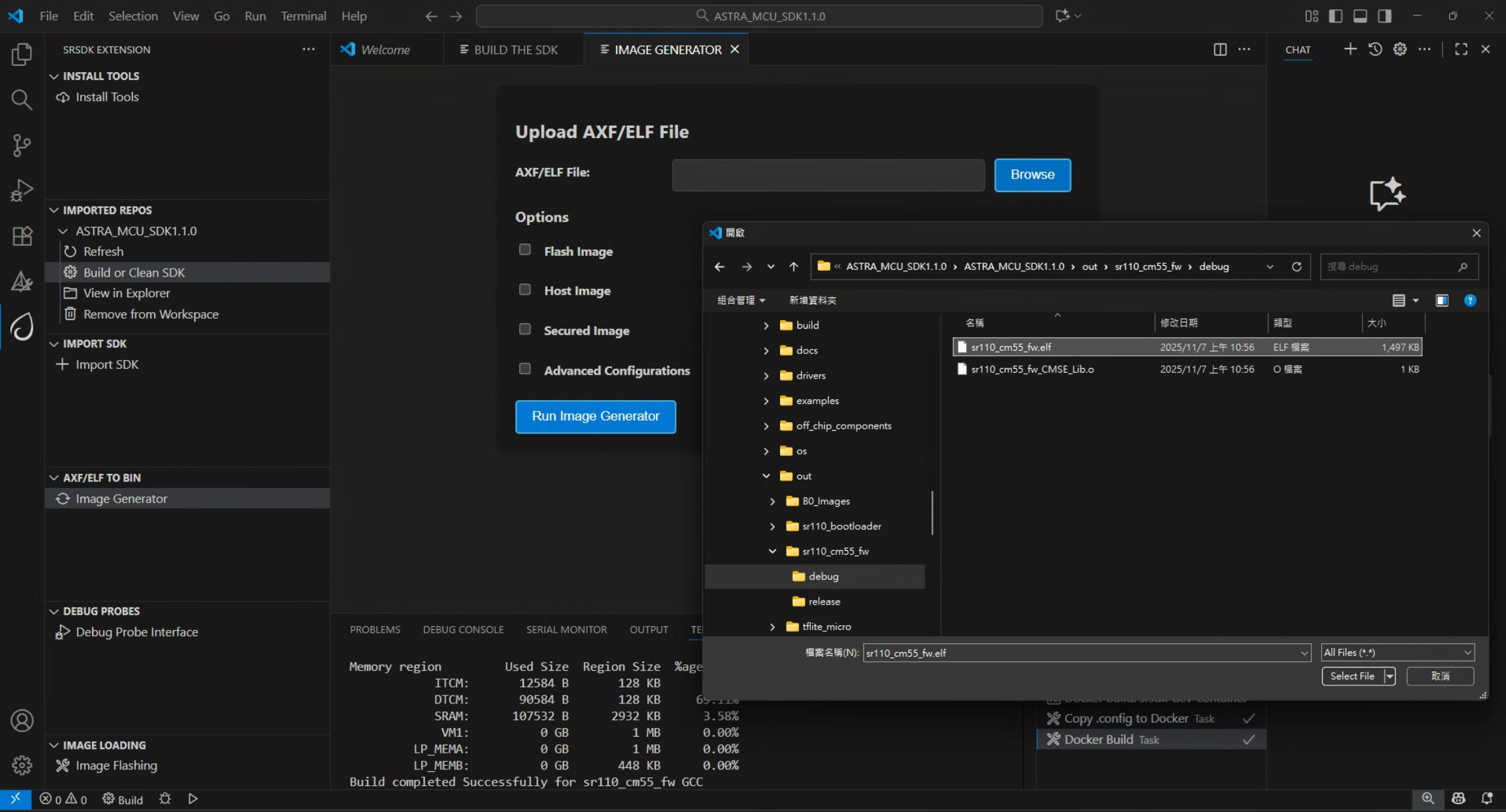 * 檔案路徑類似於:...\ASTRA_MCU_SDK1.1.0\out\sr110_cm55_fw\debug\sr110_cm55_fw.elf。
