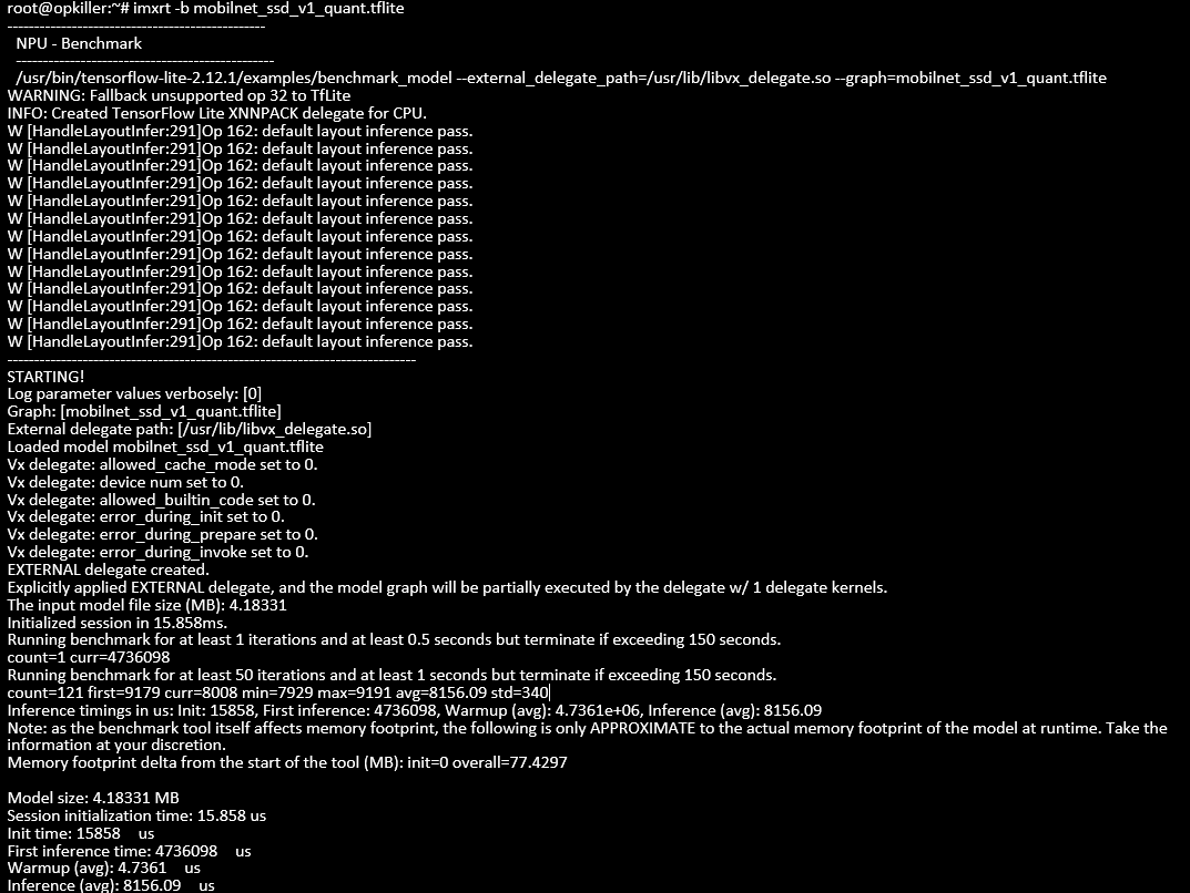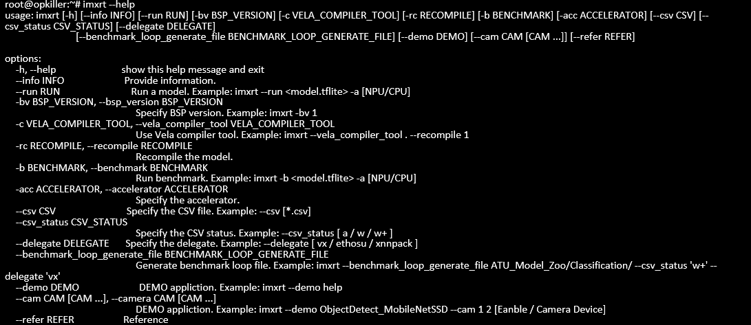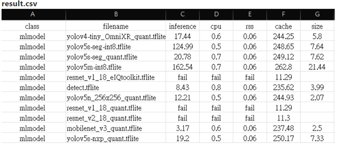 $ imxrt –benchmark_loop_generate_file mlmodel/ –csv_status ‘w+’