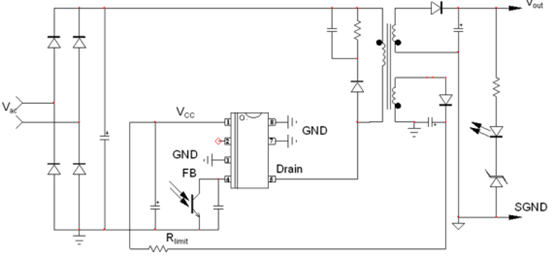 Today, we are introducing the main feature of the ON Semiconductor NCP107x series high-voltage switcher. It is a fixed-frequency current-mode controller that integrates a 700V MOSFET within the same package. This product is suitable for applications with an input voltage range of 90Vac to 264Vac. Figure 3 shows a typical application circuit of the NCP107x, which has a very simple circuit design, making it ideal for auxiliary power supplies. Additionally, the ON Semiconductor NCP107x series high-voltage switcher offers dynamic self-high-voltage startup functionality, allowing the controller to start easily without requiring an additional auxiliary power supply. The NCP107x series high-voltage switcher also provides a 1ms soft start function to reduce stress during startup and effectively minimize output overshoot issues. Furthermore, the NCP107x series high-voltage switcher features a frequency jittering function, which helps disperse the energy around the main switching components, thereby achieving EMI reduction. The Flyback application circuit of the ON Semiconductor NCP107x series high-voltage switcher is also very simple, as shown in Figure 3, and it offers a variety of comprehensive features.